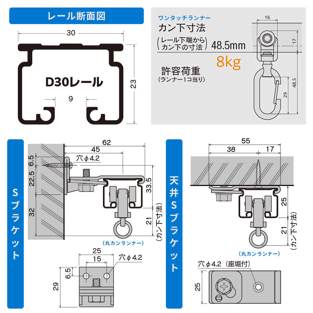 学校の体育館・公民館等などの重量のあるカーテンや暗幕のつり下げに最適です。